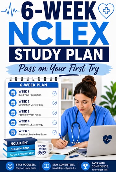 Follow this 6-week NCLEX study plan to stay organized, reduce stress, and confidently pass the NCLEX on your first attempt.