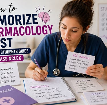 Struggling with pharmacology? Learn how to memorize drugs fast with simple nursing hacks, mnemonics, and NCLEX-focused strategies.